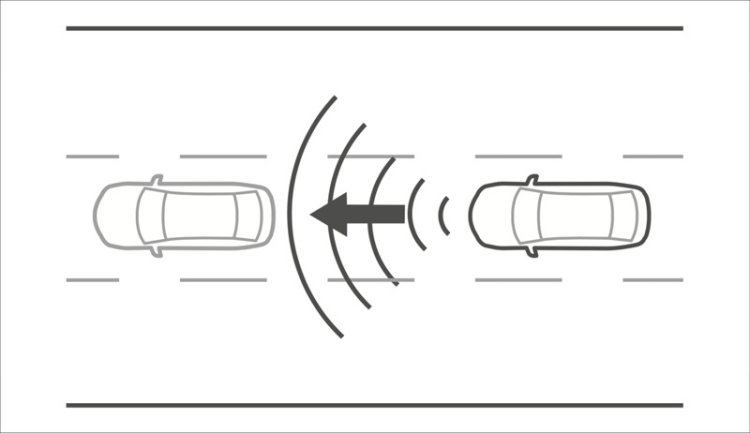 หากพบรถคันหน้าที่มีความน้อยกว่า ระบบจะทำการปรับลดความเร็วตามความเร็วของรถคันหน้าและรักษาระยะห่างกับรถคันหน้าให้เหมาะสมโดยอัตโนมัติ โดยผู้ขับสามารถปรับระยะห่างจากรถคันหน้าได้จากสวิตซ์ที่พวงมาลัย