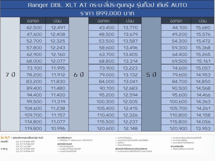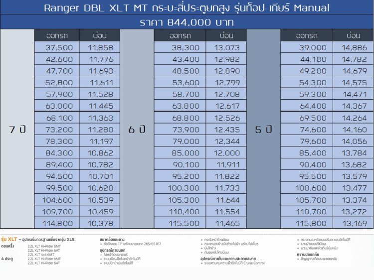 RANGER Double Cab XLT M/Tสี่ประตูยกสูงรุ่นท็อป เกียร์ Manual ราคา 844,000 บาท