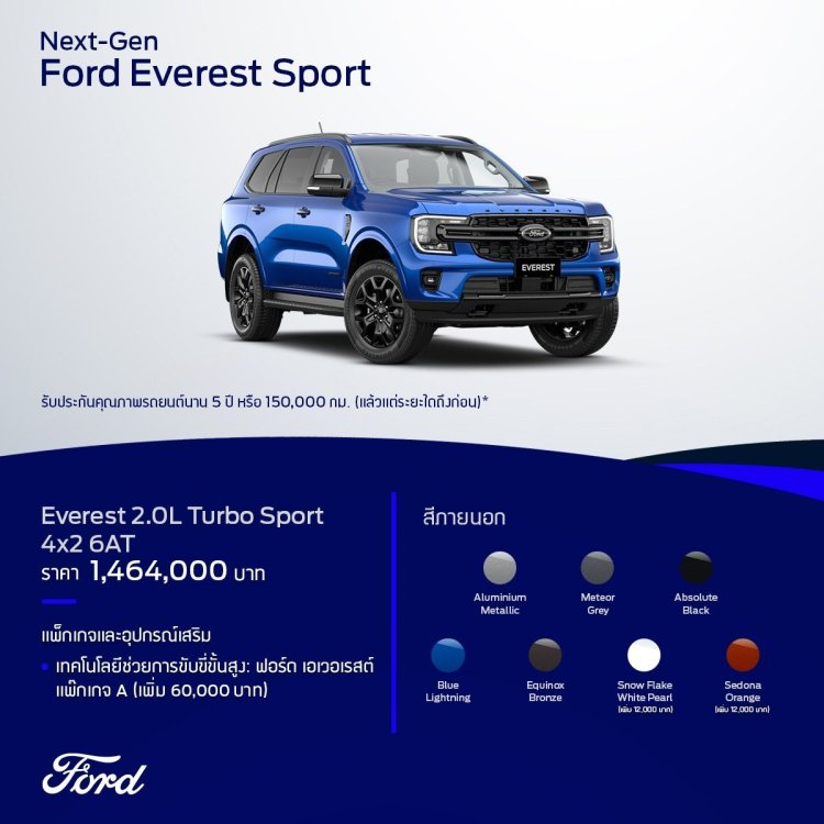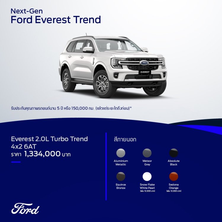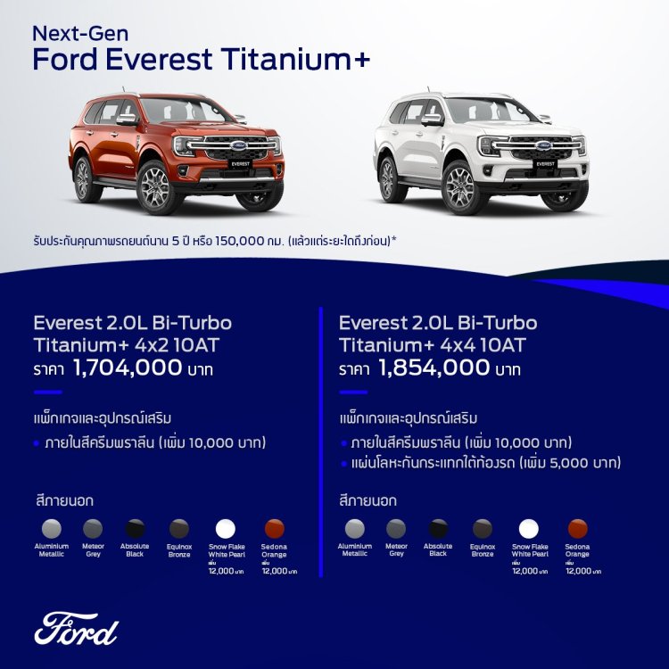 เพิ่มความกว้างฐานล้อมากขึ้น 50 มม. เพื่อการควบคุมรถได้ดียิ่งขึ้น และทำให้ ฟอร์ด เอเวอเรสต์ เจเนอเรชันใหม่ ดูล้ำสมัยและบึกบึนมากขึ้น