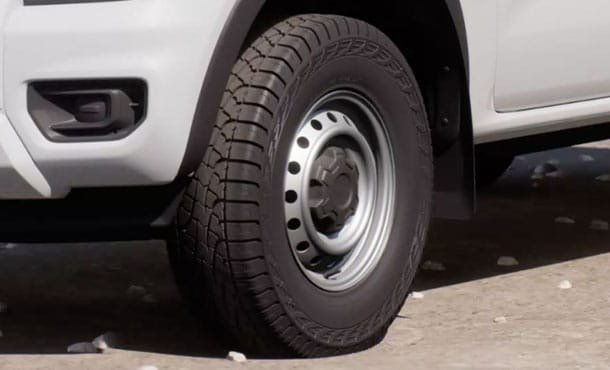 ล้อกระทะเหล็ก 16 นิ้ว และยางขนาด 215/70 R16 แข็งแรง พร้อมขับขี่ไปทุกเส้นทาง