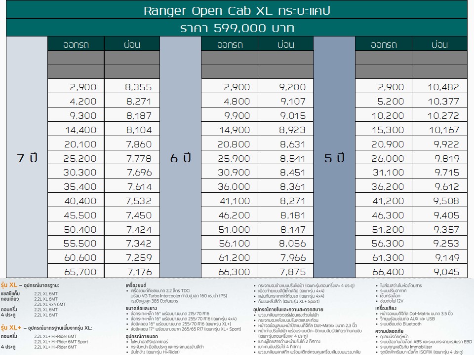 RANGER Open Cab XL ราคา 599,000 บาท